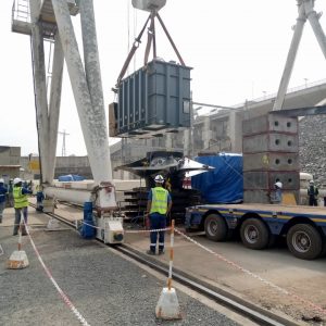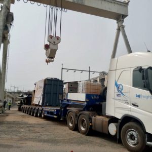 The equipment comprised two Transformers weighing 42 tons each which were loaded on-board a hydraulic low-bed truck to protect them during the journey.