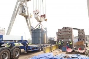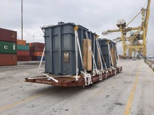 The equipment comprised two Transformers weighing 42 tons each which were loaded on-board a hydraulic low-bed truck to protect them during the journey.